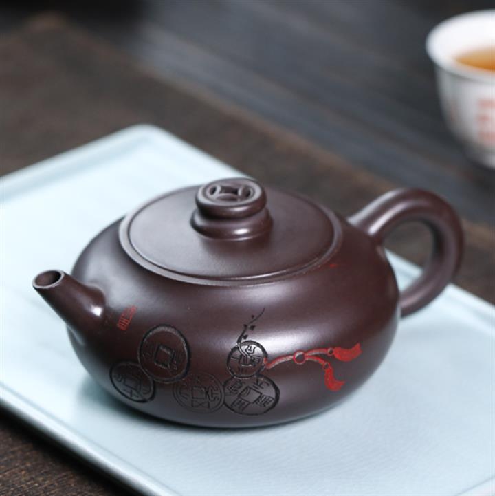 【簡介】此壺比例勻稱,精巧可愛,色澤明暗有度,古雅大氣,在泥色和勾勒效果上更顯清素典雅,整器渾圓柔美,高雅光潤,註重實用性和藝術性,淩厲飄逸,自成一派,收藏價值倍增。耳型壺把,拿捏舒適,精製外觀,簡約時尚,溫暖隨行,壺到「福」到,你值得擁有。