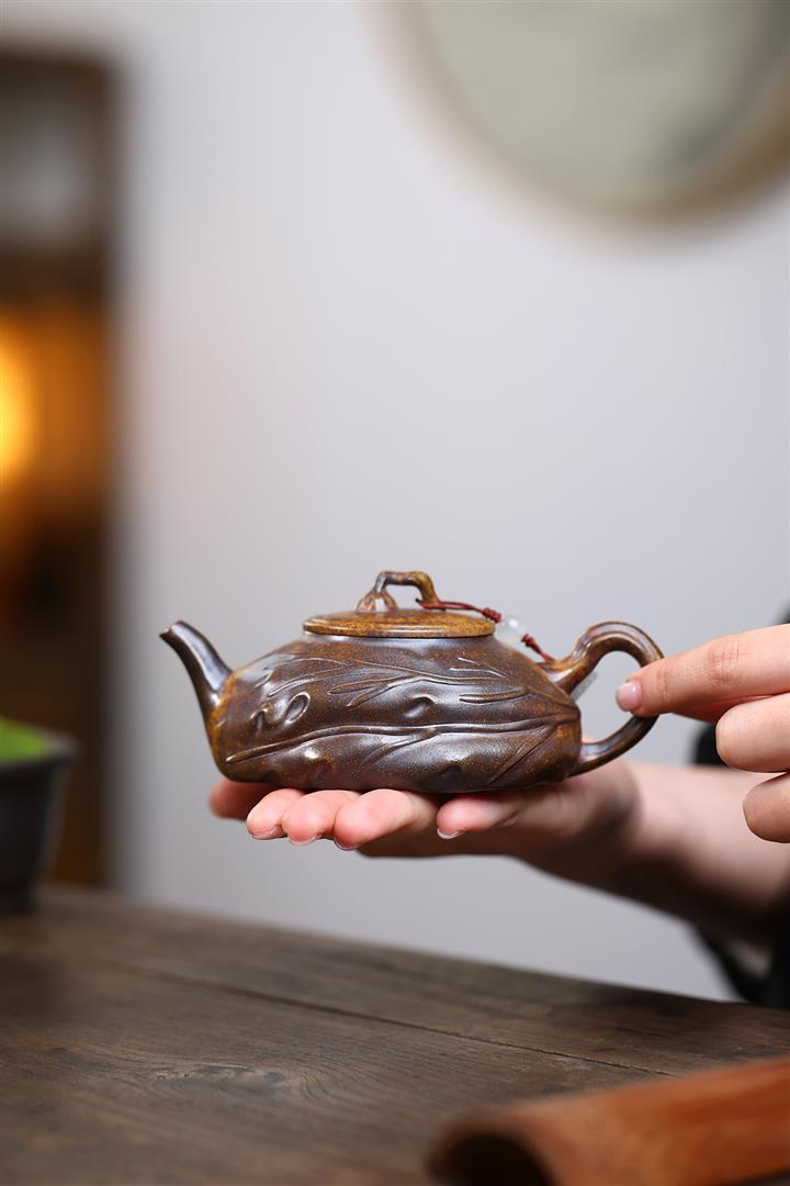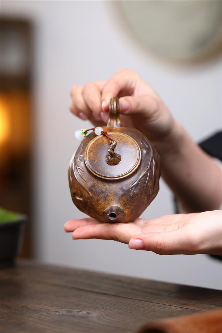 原礦龍骨金砂高溫柴燒一葉知秋茶壺POT6736