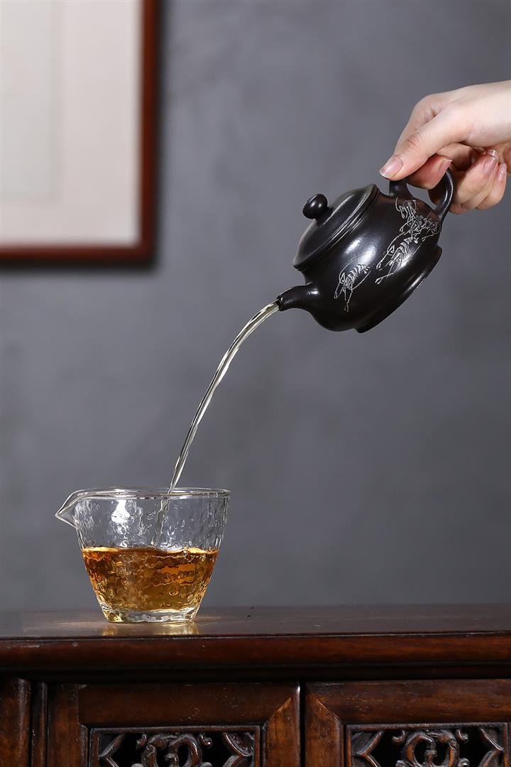 原礦百目紫泥手工描金寒江茶壺POT7071