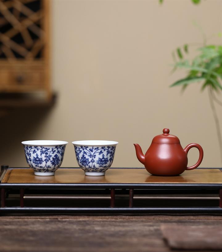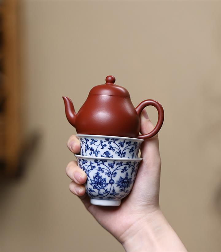 【尺寸】壺約90ml,紅泥單杯約50ml,青花瓷杯約70ml