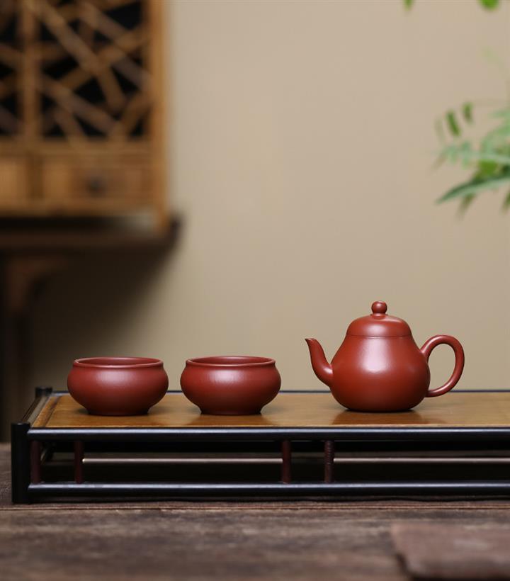 原礦朱泥水平壺壹壺兩杯套裝POT7670