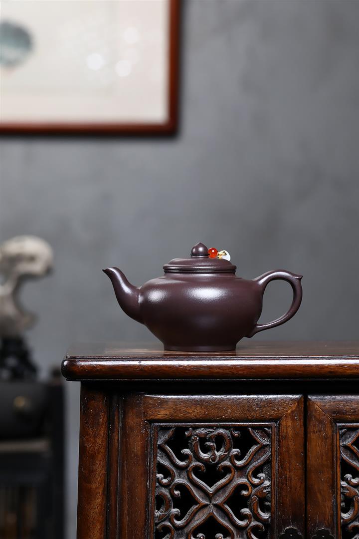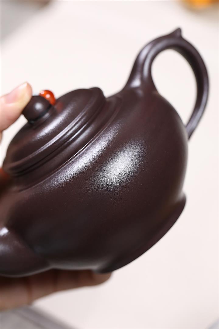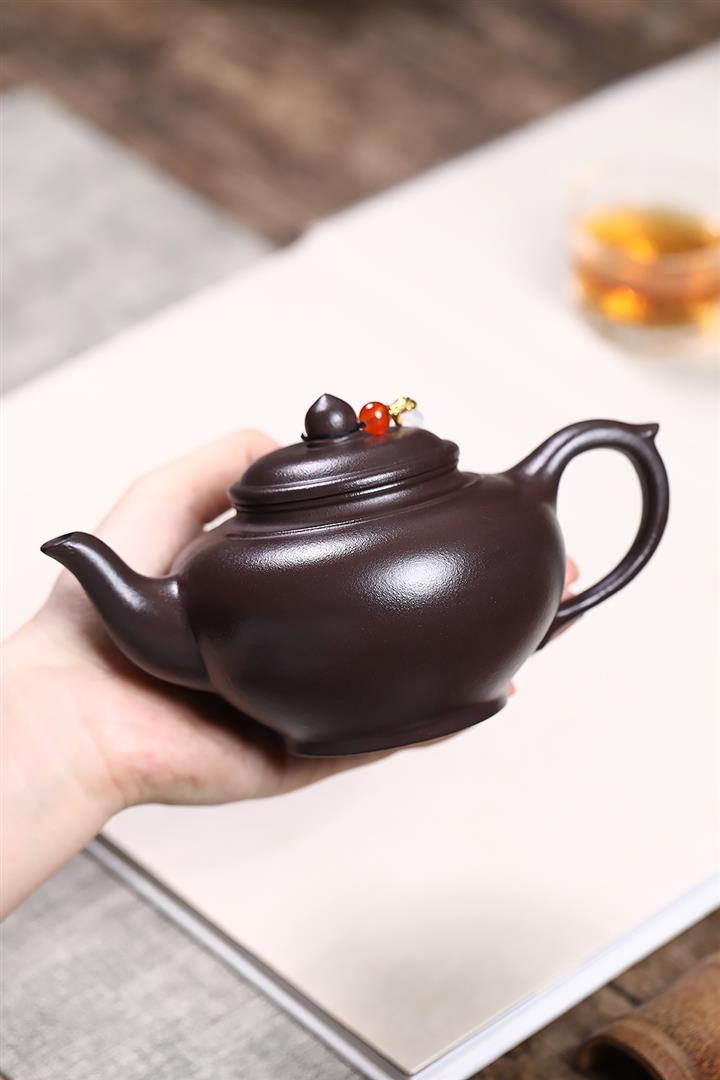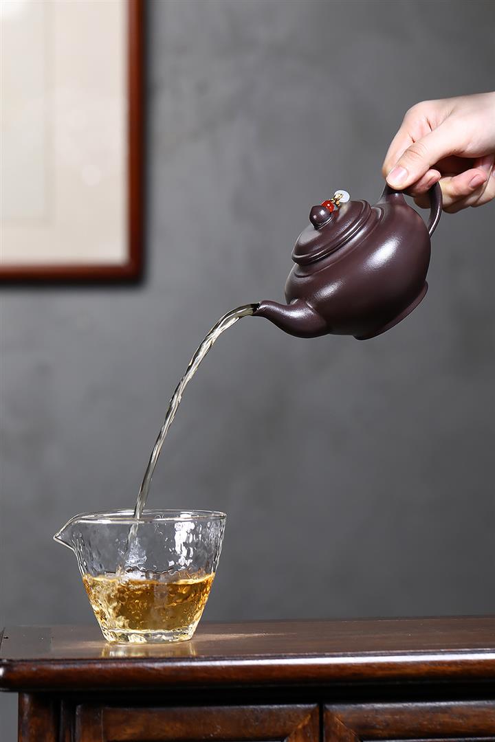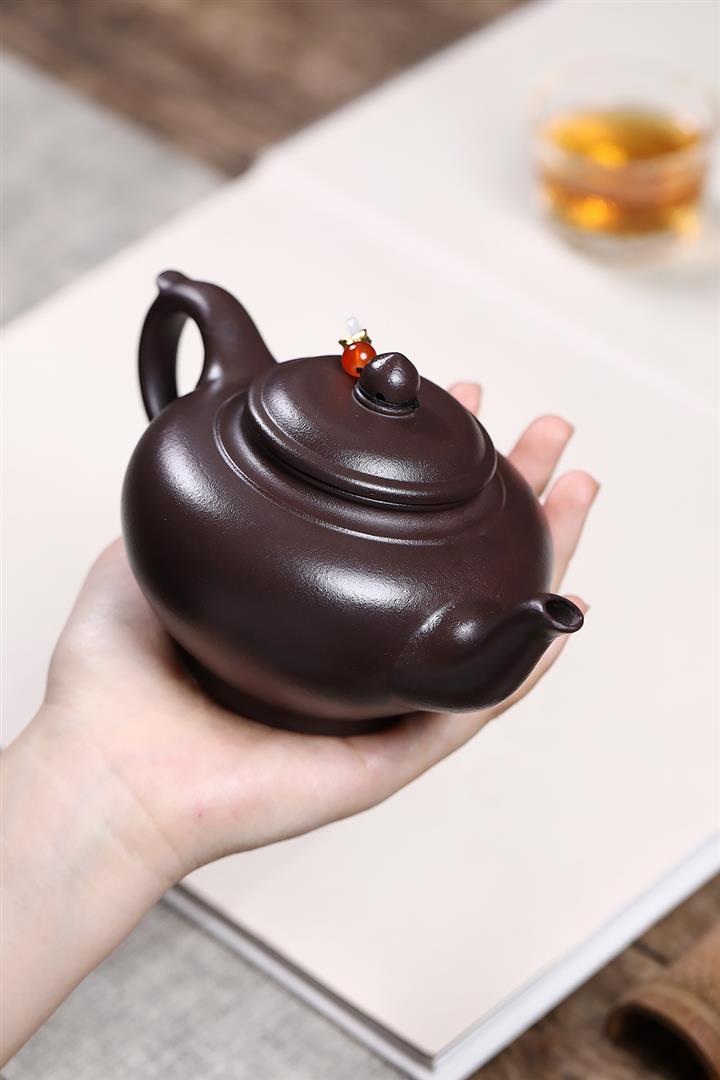 紫砂使用越久,壺身色澤越發光亮照人,氣韻溫雅。紫砂壺長久使用器身會因撫摸擦拭,變得越發溫潤光澤!